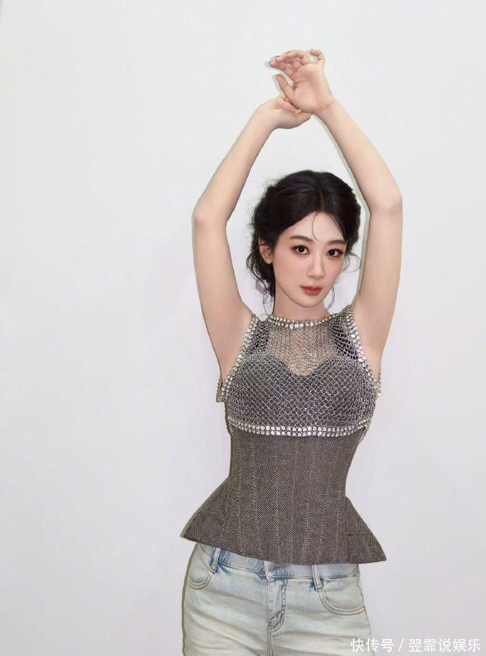 整体造型将酷辣与时尚结合得淋漓尽致无论是在材质选择上还是在色彩搭配上都展现了杨紫对时尚的独特见解。银色网状背心和鱼骨上衣增加了前卫感和未来感高腰短裤和长靴则突显了腿部线条的美感宽腰带则巧妙地提升了腰线。